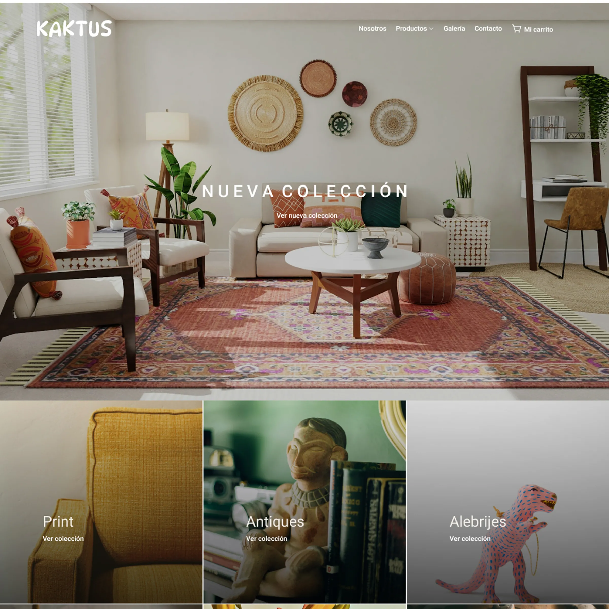Kaktus es un proyecto personal desarrollado como tienda online de artesanías y decoración mexicana. Creamos un e-commerce completamente funcional con un enfoque cultural y visual que honra el trabajo de los artesanos.