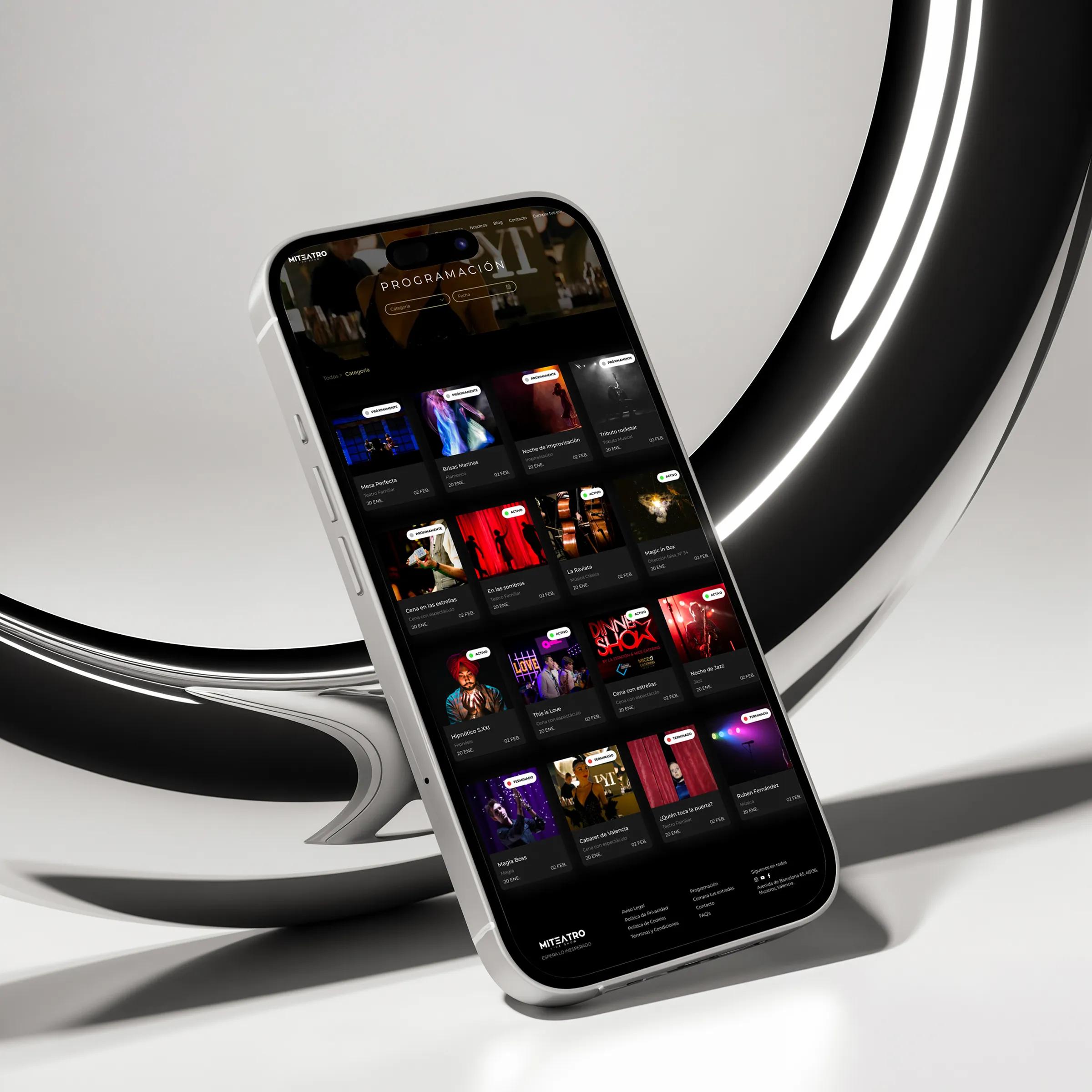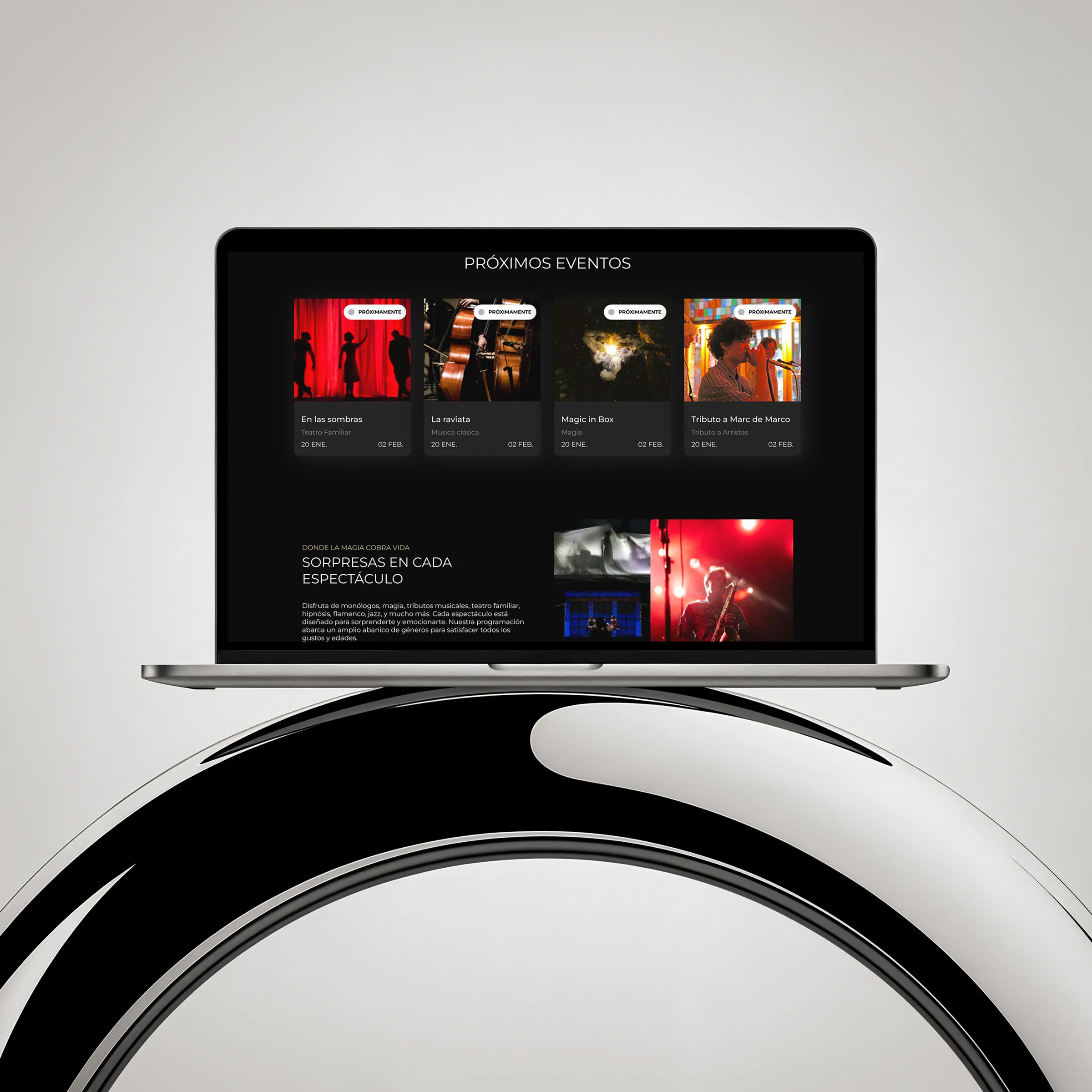 MiTeatro es un concepto único que une gastronomía y espectáculos. Creamos su web y su landing de lanzamiento, anticipando la apertura. El diseño busca transmitir misterio y exclusividad, alineado con su lema “Espera lo inesperado”.
